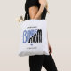 Visa din Bonus Mamma hur speciell hon är med den här roligten Tote Bag med en fet lila och svart typdesign. Text ovanför och under "Bonus Mamma" är anpassade.