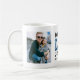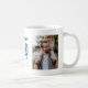 Modern, trendig två foto mugg har typografiskriptet "'best bonus pappa ever'" i marint blått och svart, 2 foton och barn i namn. Perfektens gåva till pappa för fars dag, jul etc.