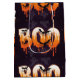 LÀgg till en kylig beröring i Halloween-samlingen med den hÀr djÀrva och snygga designen! Med ord "BOO" i droppande orange och vitt brev, omgivet av flygande fladdermus och skuggat spöken, fÄngar denna grafik perfekt hela roligten Halloween night. Perfekt för partiinbjudningar, décor i sÀsong, hÀlsningskort och festpresenter, den hÀr designen blandar skum och lekfullt inslag för ett enastÄende Halloween-utseende.