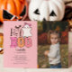 Öka din lilla flickas födelsedag med vår fantastiska inbjudan till rosa Halloween fest, som har ett vackert spöke som säkert kommer att glädja sig. Den charmerande designen visar den lekande frasen "Hej Boo" i pulserande rosa och orange, elegant inramad av en coquette-butik, skapar den perfektens val för en söt Halloween-temad födelsedagsfest. Vänner och familj i inbjudan som går med i roligten med denna visuella inbjudan som anger tonen för ett spooktaculärt firande.