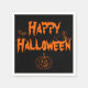 En roligt Halloween-text designad party papper napkin dekorerad med boostrande spöken och en pumpkin.