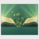Ye khubsurat Islamic-themed wrapping paper ek roshan khuli Quran ki tasveer ko dikhata hai jisse noorani glow nikal raha hai. Hari background, narm chamak aur haseen leaf vines is design ko aur bhi pur-sukoon aur spiritual bana deti hain. Gift wrapping ke liye ideal, khaas taur par Ramadan, Eid, Hajj/Umrah, Islamic events, Quran gifting aur religious occasions ke liye. Ye design na sirf nazar ko bhata hai balkay ek rohani sakoon ka ehsaas bhi deta hai.