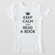 Behålla Lugn och läs en Bok T-shirt med ett minimalistiskt krona. Underbar t-shirt för bokmaskar. *Observera att Zazzle Watermark som visas i zoomförhandsvisningen INTE visas på den färdiga tryckta produkten. © Novel Type