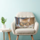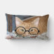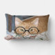 Orange tabby katt har glasögon och ljuger i sängen med sin bokar humoristiska foto lumbalkudde