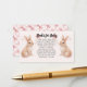 A charming Books for Baby insert card featuring two soft watercolor bunnies and a sweet poem inviting guests to bring a book instead of a card. Perfect for baby showers, woodland themes, and storybook‑inspired celebrations. The coordinating pink bow pattern is printed on the back for a polished, cohesive look.