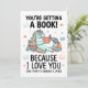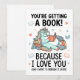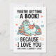 An illustrated design built around a book-related gift message, combining a unicorn character and a short statement that balances sincerity with understated humor.