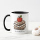 For teachers. A personalized teacher mug featuring a classic brown book stack topped with a red apple and custom name, perfect for classroom use or gifting to a favourite educator. Personalize with the inclusion of a name.