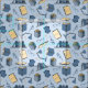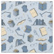 Blek blå väv med coola mönster av blått bokar, bord och avläsningsglas