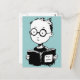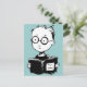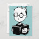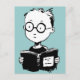 svartvit illustration av en ung pojke i glasögon som håller bok öppet och tittar upp.