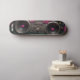 Skateboarddäcket är uppbyggt för gatorna och fött från en rå, urbaniserad estetik och har en sizzldesign som betalar heder för den gyllene epoken med höft-skutt. Konsten skildrar en vättad, tung boombox, en klassisk symbol för gatukultur. Dess metalliska chassi, märkt med tidens patina och ett oräkneligt antal sessioner, visar en historia av obeveklig rytm och en defiant anda. Stänk av vibrerande, chockerande rosa och fet teal graffiti stör de muterade tonerna i metall genom att injicera en elektrifierande puls i konstruktionen. Det här är inte bara en grafik. Det är en förstärkare för din åktur, med en visuell frekvens som säger att du är här för att skapa buller och äga trottoaren. Det här är inte bara ett däck, det är ett påstående biet. Den sammanfogar den grå realismen hos ett påträffat föremål med den explosiva kraften hos gatukonsten: De mäktiga subwooferna, med sina närmaste rosor, är ett test på de mäktiga slag som gång fyllde staden luft, medan de besvärliga dialerna och knapparna antyder att man kontrollerar sitt eget flöde och stil. Den här utformningen fångar kärnan i en gammal epok och omtolkar den för den moderna skaterna som uppskattar en blandning av vintagens själ och contemporary.