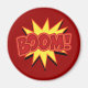 Explosionsformen tecknad bok ljud med texten "Boom!". Färg, t-tröjor, hoar, kort, klistermärken, knappar, presenter.