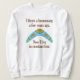 This hoodie is much better than I expected. top quality, true sizing, and really comfy. I was a bit worried that the lettering would be too dark on the navy blue hoodie, but once it arrived it was perfect. Easy to see the words, and the quality of the wording is fabulous. I will be buying more hoodies in future