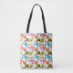 Den här väskan har en modernt design av bomeranger som är spridd över segment som korsar dem.