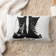 Svarta stövlar på vit bakgrund. Bild med svarta och vita stövlar.
