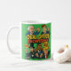 Bootleg-stil-tecknaden kollage mugg med överdrivna versioner av amerikanska presidenter som Washington, Lincoln, Obama och Trump i en mock anime-serie som kallas "Oval Office Showdown". Varje tecken ritas i fet 90-talets tecknad stil med effekter från tecknad ljud, aktiveringspunkter och en solid bakgrund av den inre grönten för maximal kontrast.