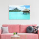 Landskap kanvastryck av en lyx för smekmånaden över vatten i den tropiska blå lagunen på den pacifistiska ön Bora Bora, nära Tahiti, i Fransk Polynesien.