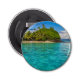 Medan vi reser genom Bora-lagunen på en pirogue passerade vi denna lilla ö med vacker handflatan träd och dess utspridda strand.