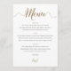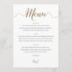 Menykort för Guld Bröllop med ett teckensnittsrubrik för calligraphy-skript. För matchande sittande diagram och Bordsnummer, visa min Zazzle-butik.