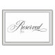 Ett enkelt och elegant Reserverat bord-kort för bord vid din mottagning eller bankett som du vill reservera för speciella sittplatser. A silver grått gräns omger det enkla vita kortet med elegant calligraphy som visar ord "Reserved"