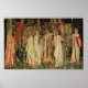 Poster med William Morris tapestry The Arming and Departure of the Knight (1891-4). Rundens Knight sitter på hästen i en skog utanför ett slott. Vackra kvinnor ger knivarna sina vapen och sköldar. En underbar gåva till Arthuriana-entusiaster och Victorianska konstsamlare.
