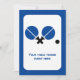 Bord tennis-pong-racketar och boll svart och blå inbjudan till lodrät som innehåller en minimalistisk piktogramikon med blå och svart bord tennisrackets och boll och texten på vit bakgrund med blå gräns.