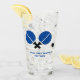Bord tennis-pong-rackets och boll svart, blått tennis-bord-glas som visningar en minimalistisk piktogramikon av blå svart bord-tennisrackets och boll.