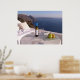Det här är en bord i Santorini på vår privata balkong som bortser från kaldera. De tog med oss vin och en fruktplatta.