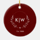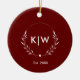 Bordeaux och White | Modern Initialer Monogram Julgransprydnad Keramik