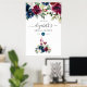 Välkomna poster om vattenfärgen möhippa vin, med maronröd, vit och maronröd peonies och ro med handskriftstypografi av elegant.