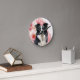 A lovely wall clock for the dog lover and a terrific gift idea for the Border Collie mom, featuring a Border Collie sitting against a backdrop of big, bold pink lilies in a botanical dog lover image.