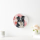Border Collie Dog and Bold Pink Lilies Rund Klocka