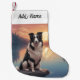 Border Collie-hund som sitter vid en sjö vid solnedgång. Lägg till denna bild på andra produkter. Lägg till din egen text också. Många husdjur i mina butiker.