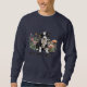 Marineblå vuxen sweatshirt med Border Collie hund design. Valpen är svart och vit och sitter bland vallmo och andra vilda blommor. Anpassa med valfri text. Exempel på formulering är "Border collie" i tryckt, svart skuggfont. Annan formulering kan vara en gård, eller hemman, namn, hundens namn eller annat. Designen överförs till andra skjortstilar och färger för alla åldrar.