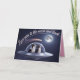 A cute dog Valentine's Day card featuring a Border Collie couple in a flying saucer going to the moon.