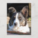 En vacker border collie gårdshund fångad gömd bakom en traktor trailer.