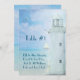 Fyr och måsar med segelbåt för nautiskt bröllops platsindelning.