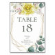 Bröllopsbord Nummerkort | Gula akvarell peonblommor med alabastervita magnolior och grönska - en guld geometrisk mångfacetterad terrarium stil ram prydd med blomsterbuketter. Baksidan är en kompletterande koordinerad färg. Anpassa text, typsnitt, färg och storlek. Originalkonst skapad för The BarefootBride ™ av © WhimsicalArtwork ™ - Det här är en del av en komplett bröllops brevpapper med matchande bröllop, baby shower och andra evenemangs brevpapper.