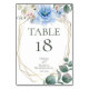 Bröllopsbord Nummerkort | Ljust himmelblå akvarellpionblommor med alabastervita magnolior och grönska - en guldbelagd geometrisk mångfacetterad terrariemodell ram prydd med blomsterbuketter. Baksidan har en kompletterande koordinerad färg. Anpassa text, teckensnitt, stil, färg och storlek. Originalkonst skapad för The BarefootBride™ av © WhimsicalArtwork™ - Det här är en del av en komplett bröllopspappersserie med matchande bröllop, baby shower och andra evenemangspapper.