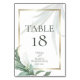Bröllopsbord Nummerkort | Eleganta moderna tropiska gröna blad som omger denna gyllene ram - Baksidan är en kompletterande koordinerad färg. Anpassa text, typsnitt, färg och storlek. Originalkonst skapad för BarefootBride™ av © WhimsicalArtwork™ - Detta är en del av en komplett bröllopsbrevpappersvit med matchande bröllop, baby shower och annan evenemangsbrevpapper.