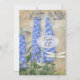 Matchande bröllopsdusch-, bröllopsfest- eller formella tilldelade sittplatser för evenemangets bordsnummer. För naturälskaren som planerar ett utomhus-, landsbygd-, rustikt trädgårdsbröllop eller helt enkelt älskar blommor! DESIGN: Bakgrunden och kantkonsten för denna eleganta, formella men ändå något rustika bröllopsinbjudan är handmålad av Audrey Jeanne Roberts. Bakgrunden är en åldrad, sliten, sprucken finish i pergamentstil. Vackra spikar av djupblå delphiniumblommor sträcker sig mot himlen i olika nyanser av blått från himmel till periwinkle. En vit Matilija-poppelblomma (ofta kallad "friterad äggblomma" eller "pappersblomma vallmo") målades i akvarell, live från Audrey Jeannes egen trädgård. En blå Morpho-fjäril svävar över en Damselfly-dragonfly som vilar på vallmon. På baksidan finns samma bild utan den halvgenomskinliga velum-looken och kanten. En komplett, matchande samling bröllopsinbjudningar finns tillgänglig för alla dina