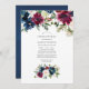 Bordo & Marinblå Akvarellblommor Livets Firande Inbjudningar