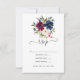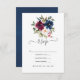 Bröllop RSVP-kort med marinblå, vita och vinröda pioner och rosor med elegant handskriven typografi.