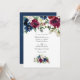 Bordo och marin vattenfärgblommig QR-kod bröllop Inbjudningar
