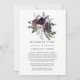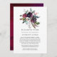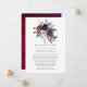 Bourgogne plommonröd vin och mörkt lila blomster boho reducerad bröllopsgäst inbjudan med accenter av rosafärgad. Under dessa osäkra tider kan det hända att du måste hålla ett mindre bröllop än vad som ursprungligen planerats. Detta annonskort tar bort det pinsamma och tar en tyngd av dinnet! Du kan dessutom ge ett alternativ att gå med dig för en virtuell ceremoni.