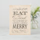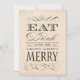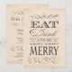 Elegant anpassningsbar inbjudan med orden Ät, drick och var Mycket, Mycket, Glad. Passar för årsdagar, födelsedagar, vintillverkningar, julfirande och många andra tillfällen.