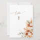 Lägg till en touch av elegans till din bröllopsfest med detta minimalistiska moderna boho terrakotta-plan bröllopsbordnummer. Designat med en enkel men sofistikerad stil, har det ett kalligrafiskt manus, botanisk eucalyptusgrönska och unik typografi. De brända orange och terrakotta nyanserna skapar en varm, bohemisk stämning som kompletterar alla eleganta eller formella miljöer.