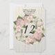Ett så prisvärt sätt att tillföra charm, värme och välkomst till dekorationen på ditt mottagningsbord! Dessa bordsnummerkort kan ramas in, placeras på en hållare eller användas på många sätt för att dirigera dina gäster till deras sittplats vid din formella bröllopsmottagning, bröllopsfest eller formell företagsaktivitet. Ändra helt enkelt bordsnumret för varje kort och lägg det i din varukorg. Denna design har en handmålad rosa och vit hortensia blandad med rosafärgade och krämfärgade rosor och saftig bladrik flora kransdesign. Dessa blommor växte i Audrey Jeannes trädgårdar och plockades färska för att målas från livet. En sliten, rustik landsbygd, lada trägärdsbräda bakgrund i mjuk vit med en handvirkad virkad kant runt kransen fullbordar den söta designen som är perfekt för bakgårdsträdgård, ut
