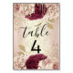 Bordsnummer 4 Blommigt Ro Guld Marsala Burgundy