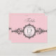 Ett bord-kort som tar sitt inflytande från Art Deco-eran. Ett ornatband, tittar som en Victoriansk armwatch, har en medallion som håller bordsnumret eller brev med anpassadet ord "bord" ovanför det. Rosa bakgrund skriver ut ett subtilt mönster som vattenstämpel. Dubbla-sidig design för bekvämlighet från alla vinkla. Finns i alternativ färg med matchande produkter. com
