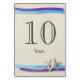 Söt lila och blått band- och stjärnfiskkort för bordsnummer för att komplettera vår inbjudan till strandtema, kan vara personlig och beställas individuellt.